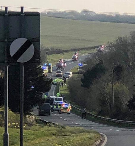 The road was closed for several hours following the collision with three air ambulances called to the scene, landing on the road.