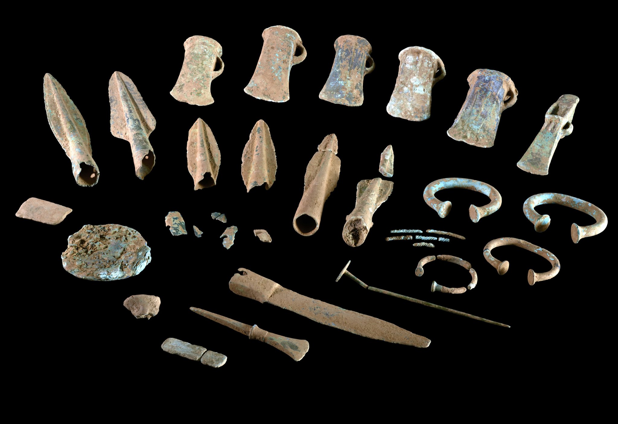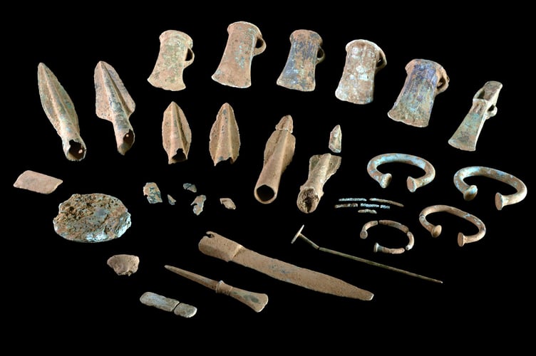 The find of more than 50 bronze tools, weapons and body ornaments was made by metal detectorists Craig Hearne and Kieran Slade in Llangeitho in 2020.
