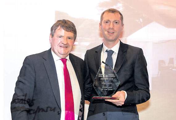 Aberaeron solicitor Nigel Davies, is pictured receiving the Volunteer of the Year award at the Tennis Wales awards ceremony in Cardiff. A stalwart of Aberaeron Tennis Club for many years, Nigel is the father of Aberaeron mayor Cllr Rhys Davies.