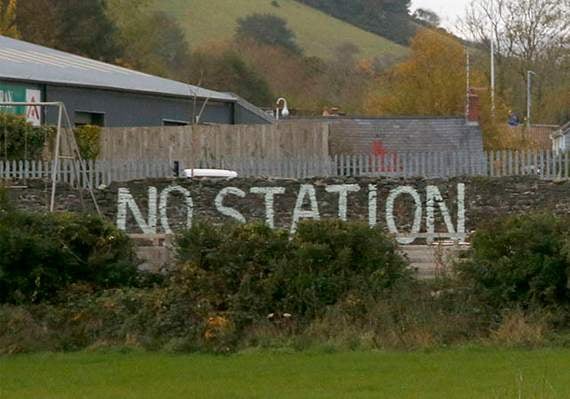 After preliminary work began, a frustrated Mr Jones painted a sign on a wall near the site in big letters saying ‘NO STATION’.