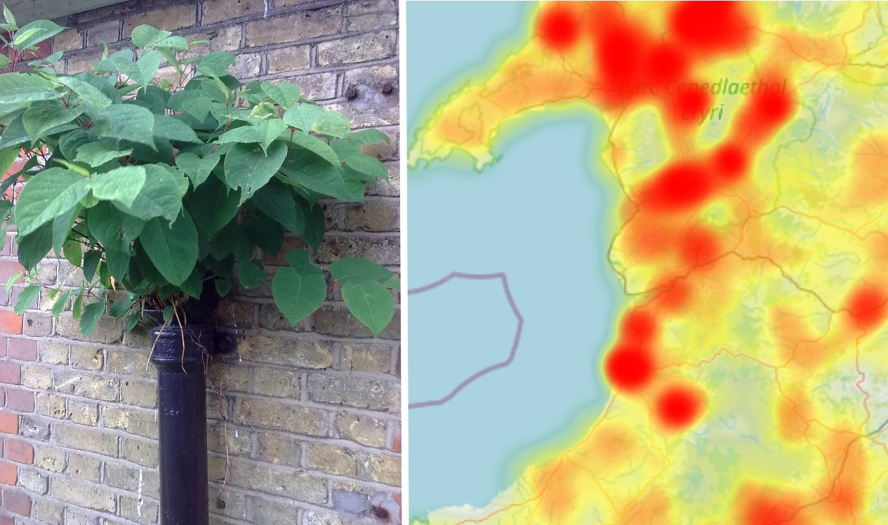 Users can enter their postcode directly into the map to discover the number of verified knotweed sightings within a 4km radius, with hotspots highlighted in yellow, orange or, in the worst cases, red. They can also add sightings by uploading a photo to be verified by experts.
