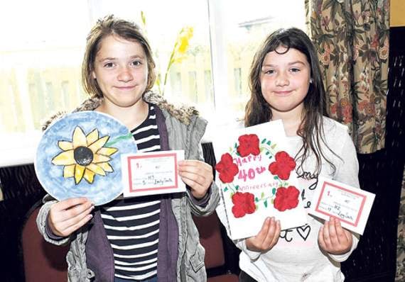 Emily and Lucy Smith won first place prizes for their painted plate and 40th anniversary card respectively