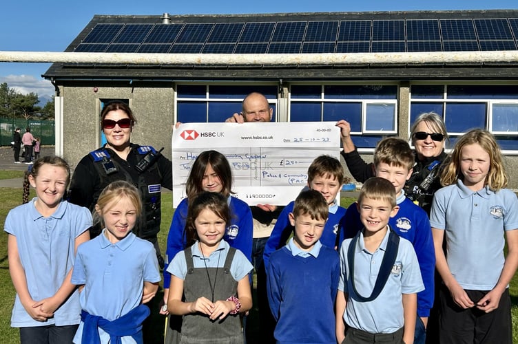 PCSO Elliw Williams, who actively supported the grant, presented the cheque to the children, accompanied by PCSO Gill Duffy-Williams.
