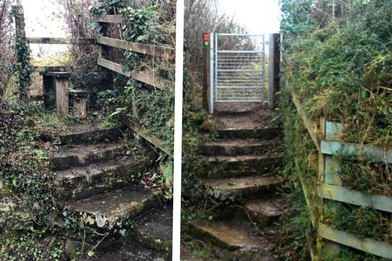 Before and after photographs like the ones above highlight the extent of the work the Aberystwyth Ramblers Footpath Working Group has done to improve access.