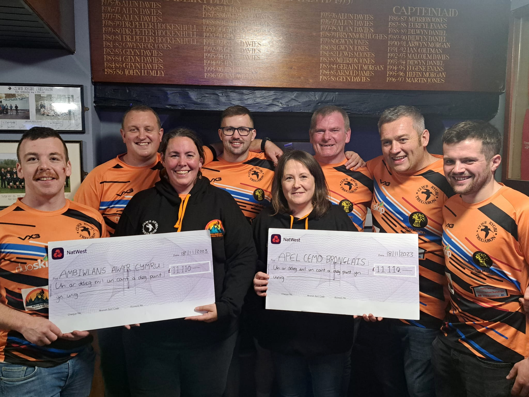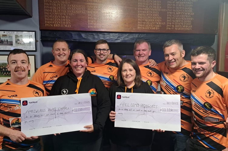 The money was handed over to the two causes at a special event at Tregaron Rugby Club earlier this month.