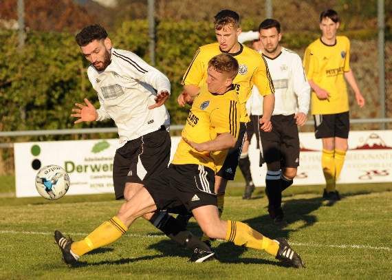 Glantraeth’s Corrig McGonigle tucked away a penalty on 32 minutes, and in two frantic minutes just ahead of half-time Meilir Williams struck twice for the home side, on 43 and 44 minutes, for a 2-1 lead.