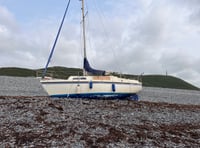 Yacht left marooned on Tanybwlch beach